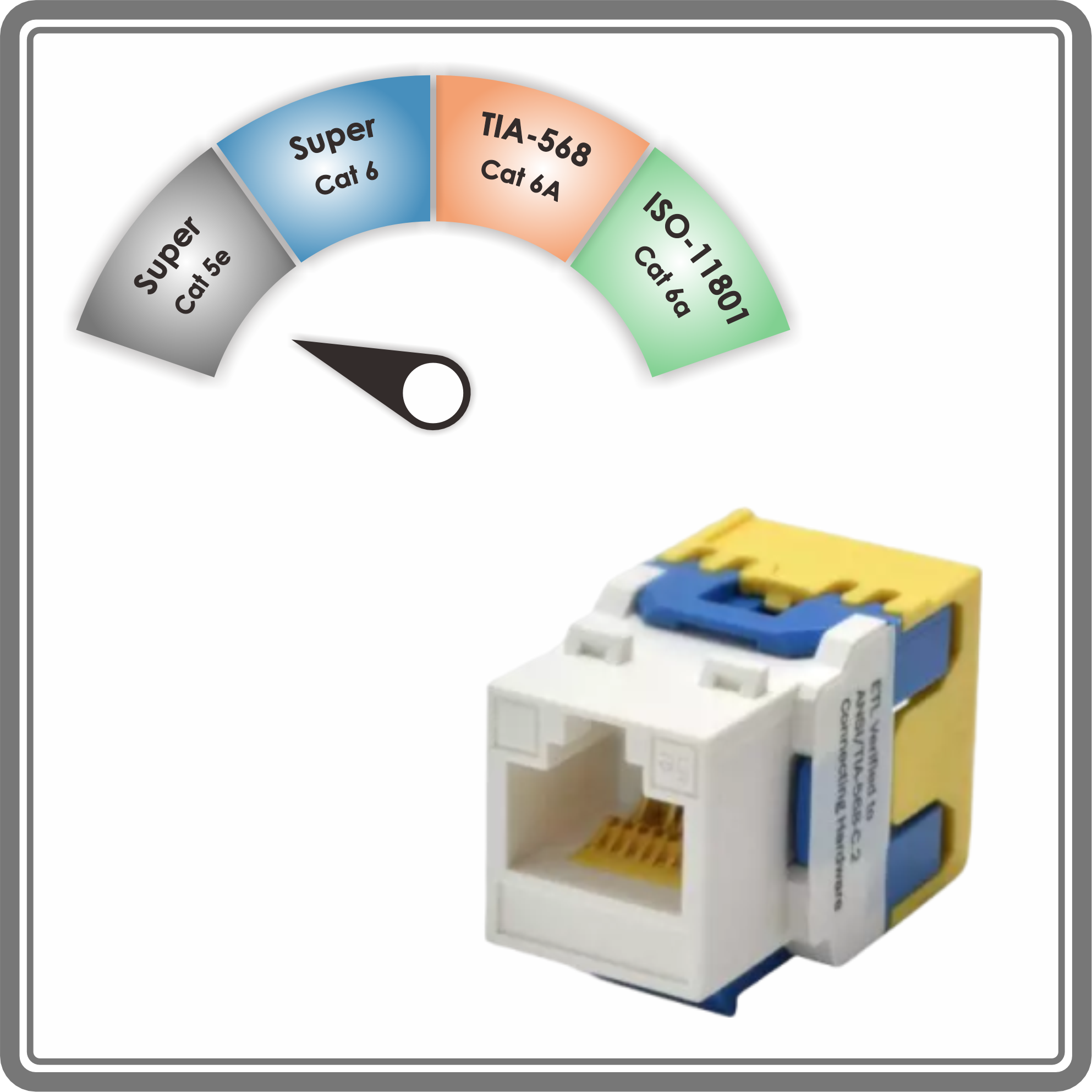 مقبس كيستون غير محمي من نوع Super Cat 5e بتصنيف مكون 180˚
