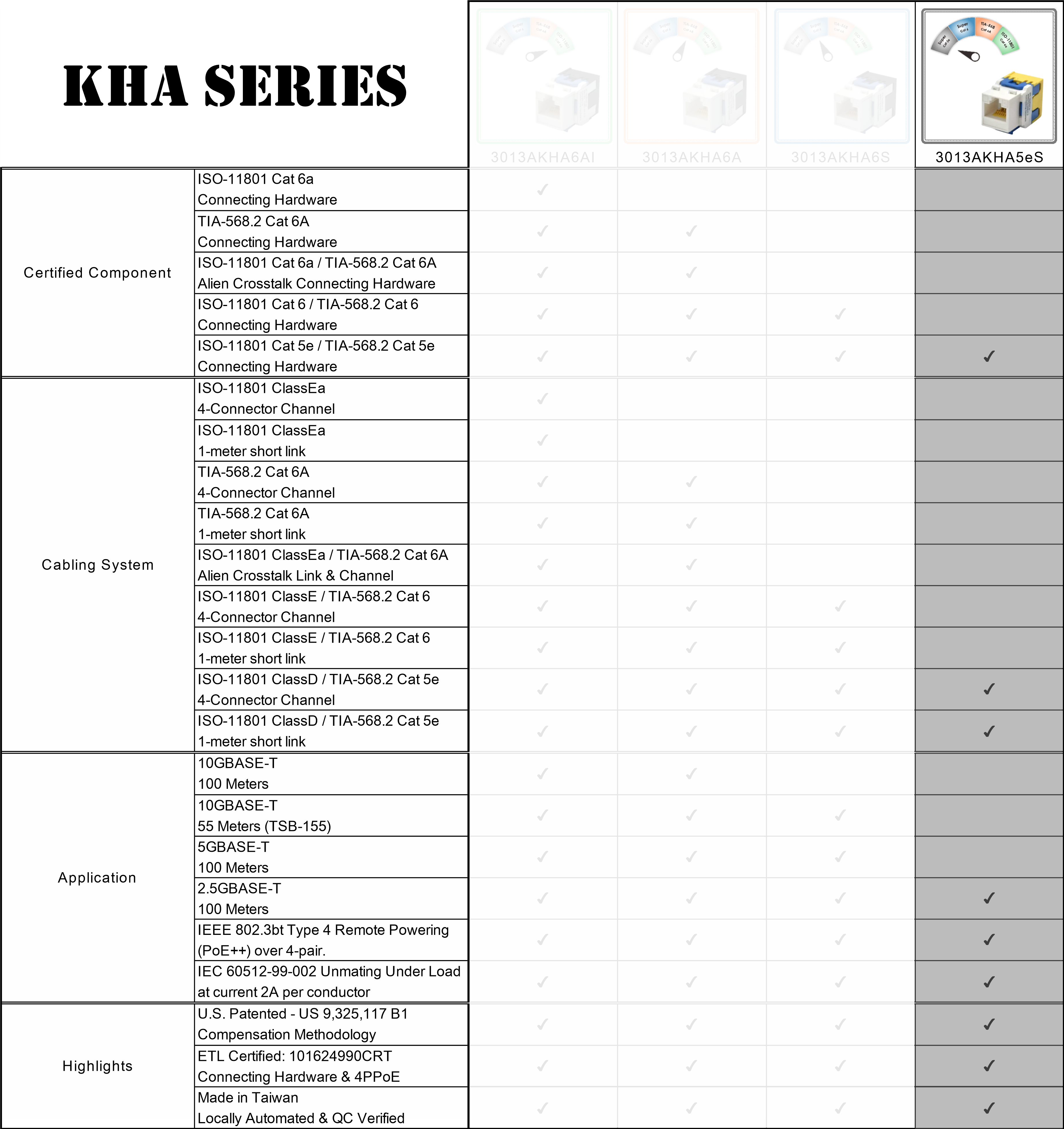 قد تكون 3013AKHA5eS هي المدخل الأساسي في سلسلة KHA، لكنها لا تزال تتفوق على المقابس القياسية من نوع Cat 5e من خلال تجاوز الترددات القياسية ودعم 2.5GBASE-T لأداء شبكة أسرع.