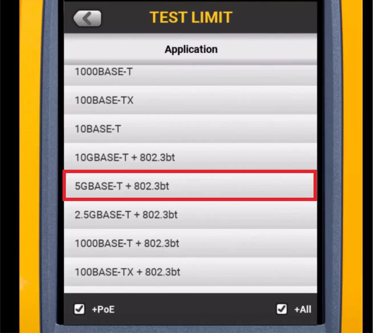 Modern handheld testers like the FLUKE DSX-8000 now support 5GBASE-T testing, simplifying performance verification.