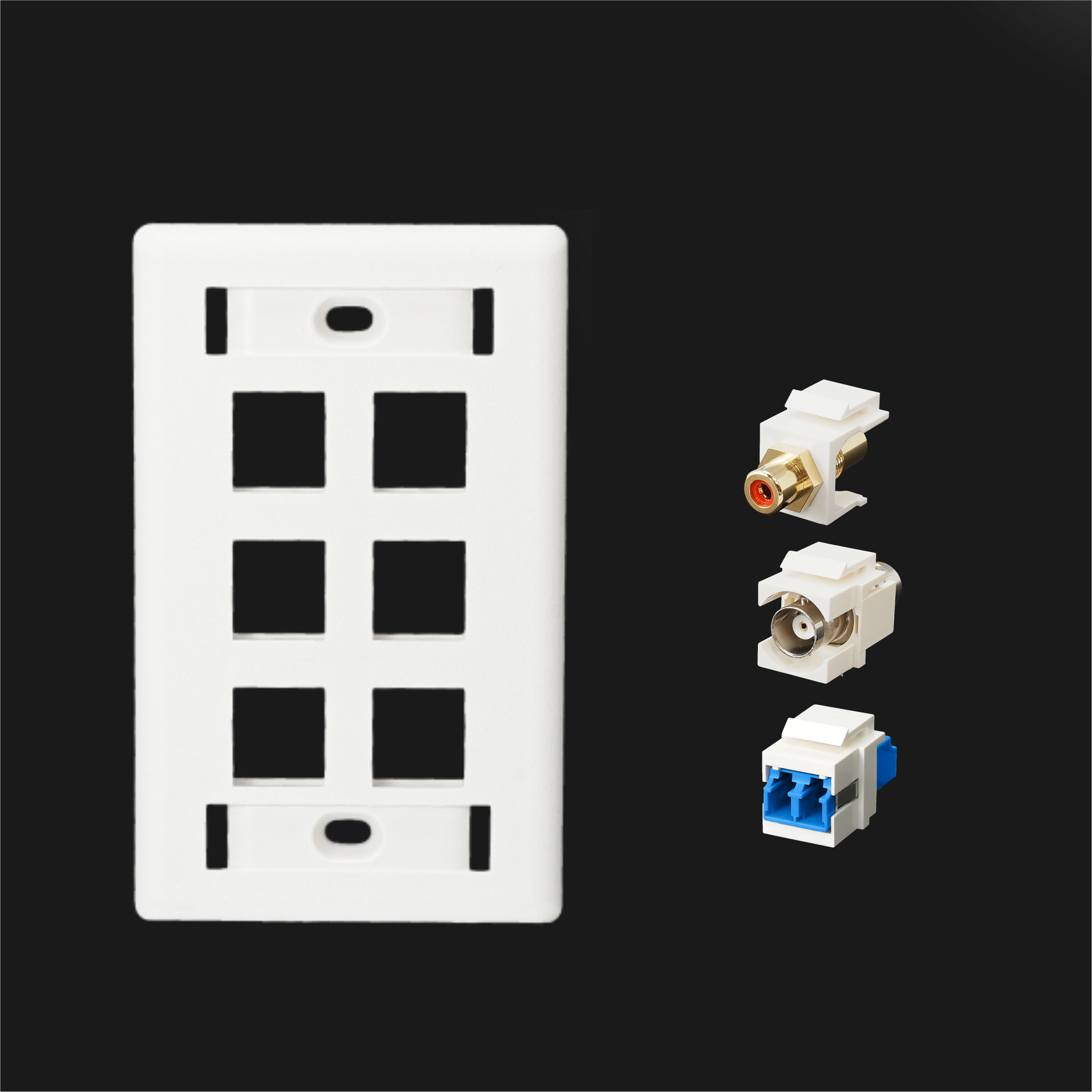 Designed for flexibility, these faceplates are compatible with universal keystone jacks for data and voice applications, as well as Quick-Snap bezels for built-in A/V or fiber optic adaptors.