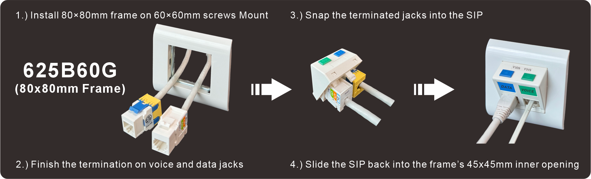 The 80×80mm gang frame with 45×45mm inner spacing is widely used in French-influenced regions, where major electrical brands like Schneider and Legrand dominate. Similar to the UK-style Euromod, the 45×45mm opening accommodates either a single 45×45mm SIP or two 22.5×45mm SIPs.