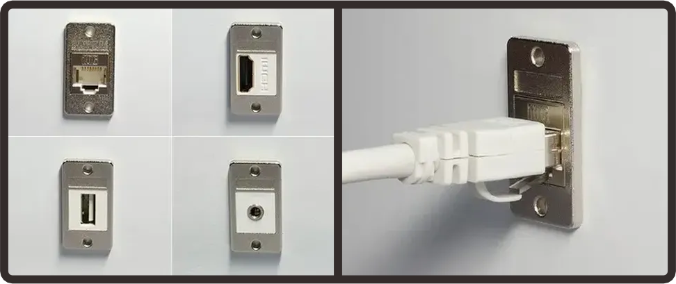 The 3013BUSDN1 is a die-cast mounting fixture built for compact setups with minimal cabling. It supports more than just Ethernet—HDMI, USB, and fiber optic adapters can also be installed, making it a versatile option for data, multimedia, and fiber connections.
