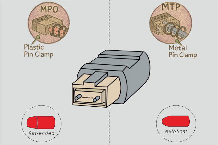 MPO is the industry standard for this type of connector, but MTPĀ® is a brand name for a high-performance MPO connector manufactured by US Conec. All MTPs are MPOs, but not all MPOs are MTPs. MTPĀ® connectors feature precision-engineered upgrades for better optical and mechanical performance, including elliptical guide pins that enhance alignment accuracy and a metal clamp that boosts alignment consistency.Male vs. Female Connectors
