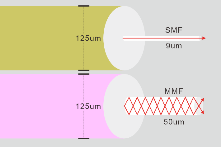 The fiber type dictates the maximum transmission distance and wavelength used. Single-Mode Fiber (OS2, 9/125 µm) supports long-reach links at 1310 nm or 1550 nm. Multimode Fiber has a larger core for short-reach data center use. Common types include OM3, OM4, and OM5, which supports broader wavelengths. Multimode Fiber typically operates at 850 nm, and in some BiDi applications, transmission may extend to around 910 nm.Polish Type: UPC vs. APC