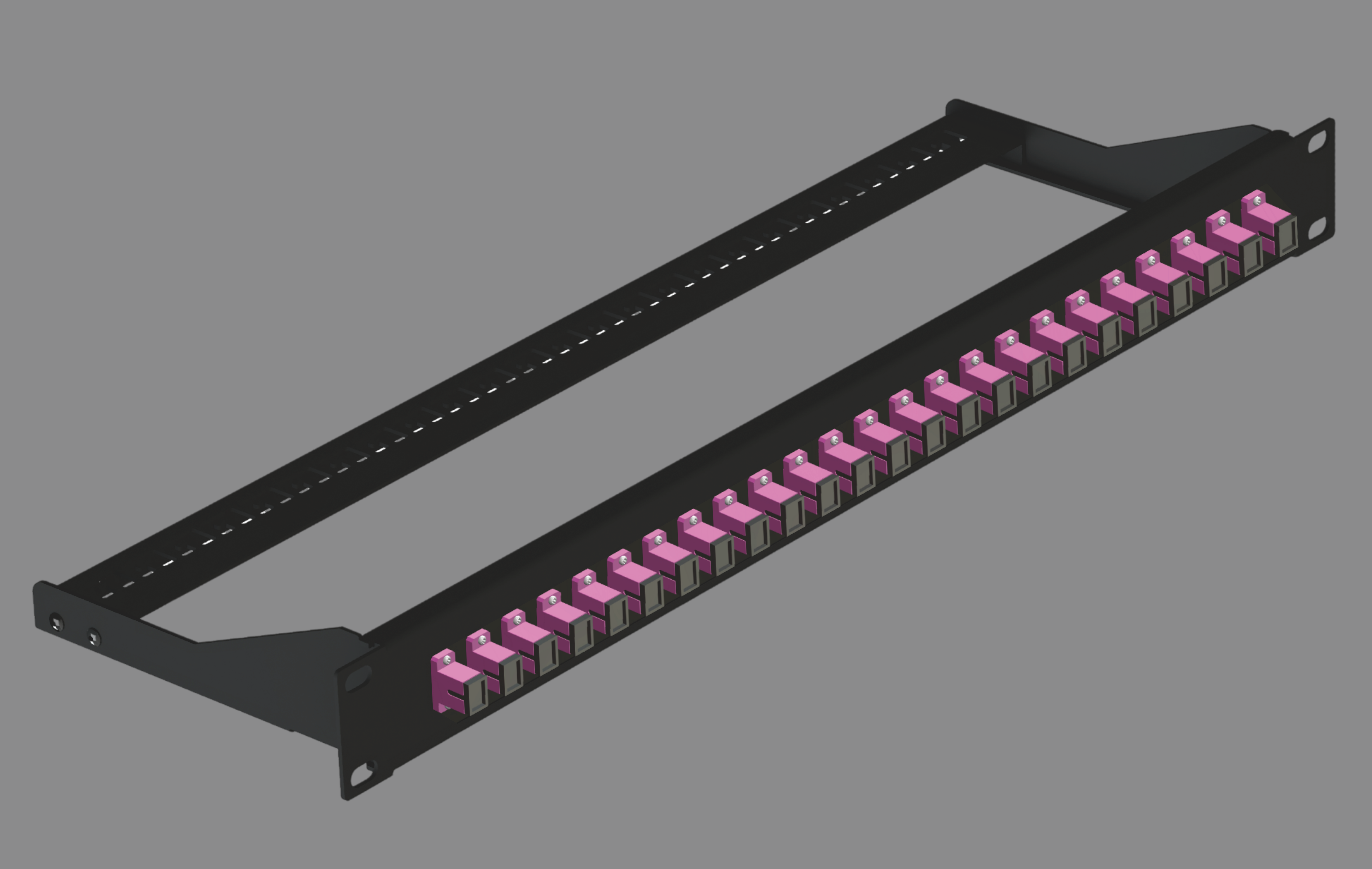 The 1RU Standard Patch Panel is equipped with SC Simplex adapters featuring ceramic sleeves to ensure precise fiber alignment and low insertion loss—typically 0.1 dB, with a maximum of 0.2 dB.
