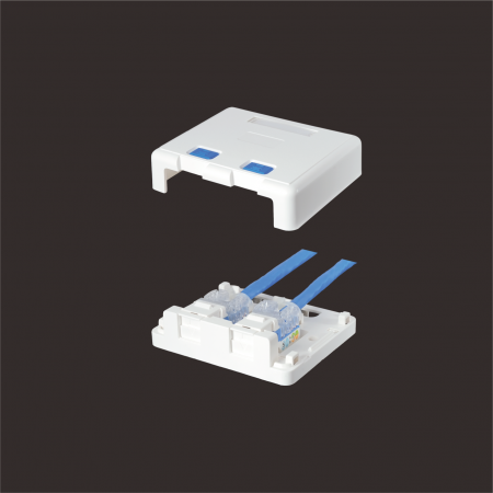 Each box comes standard with two screws for a secure mount. Optional double-sided adhesive tape is available for installation alternative. Made of flame-retardant ABS (UL94V-0), with office white (approx. RAL 9016) as the standard color.