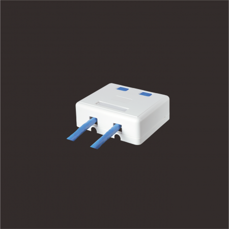 The 3003ADI is a two-port Surface Mount Box featuring spring-loaded shutters. V-cut knockouts on the sides and rear can be removed with pliers or cutters to suit your cable routing needs. Color-coded icons - blue for data and green for voice - help identify each port’s application. The top-mounted ID label and cover ensure clear workstation identification.
