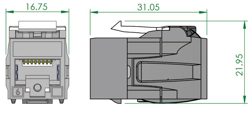 180° RJ45 Cat 6 UTP Feed-Through Keystone Coupler Specifications Document