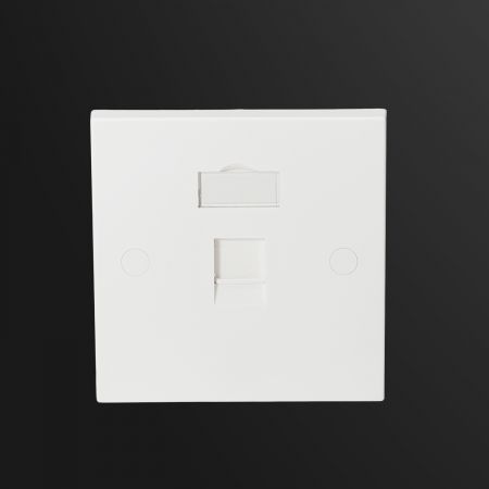The surface has a light matte texture that helps resist fingerprints and dust. Screw caps are included too, so the mounting screws stay hidden—giving the faceplate a cleaner, more seamless look once installed. It’s pre-cut to accept keystone jacks with latch heights between 19.20 and 19.40 mm. If you’re working with slightly taller jacks (19.80–20.20 mm), just let our sales team know—we’ve got an alternate version ready to go.