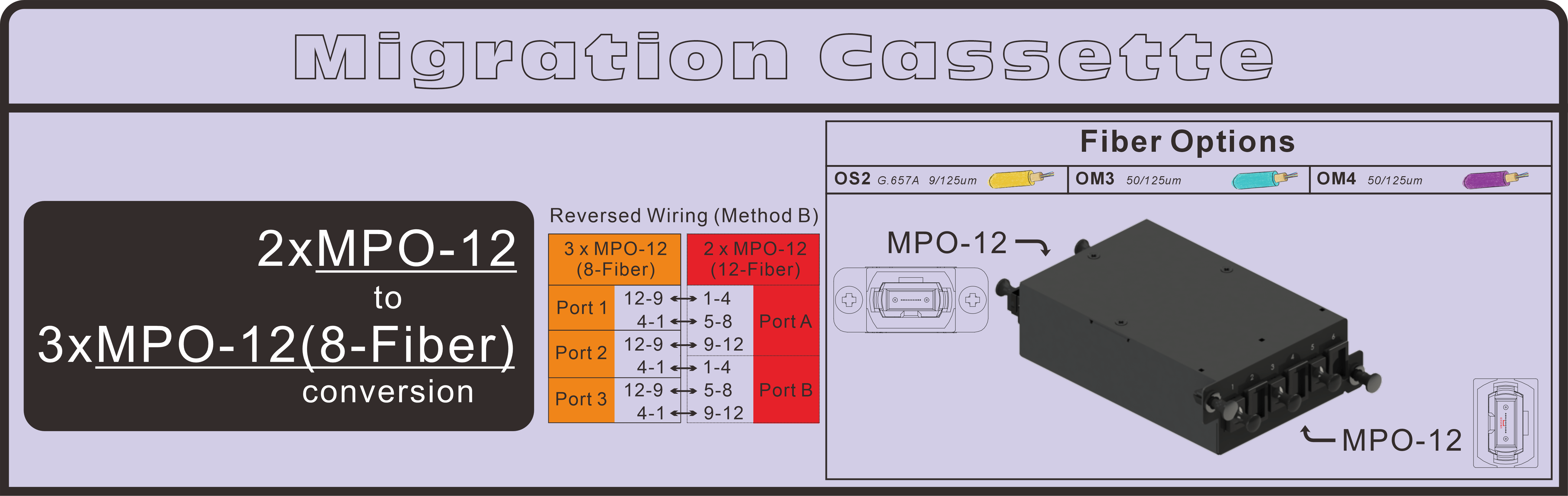 Modular 2xMPO-12 to 3xMPO-12 Migration Cassette