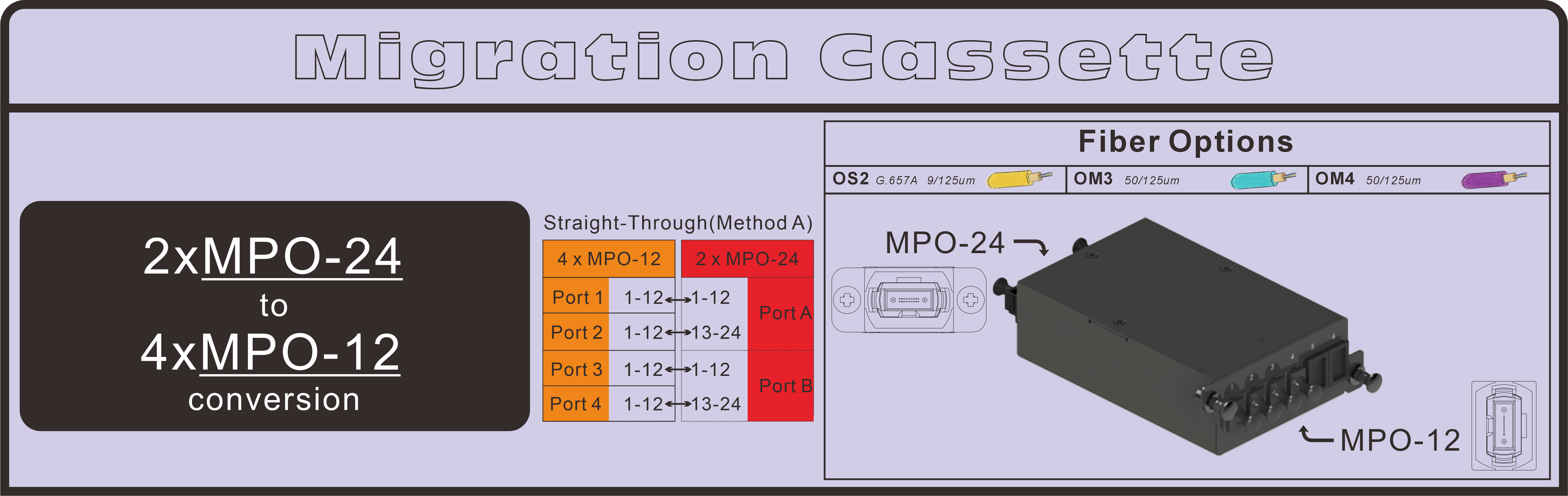 Modular 2xMPO-24 to 4xMPO-12 Migration Cassette