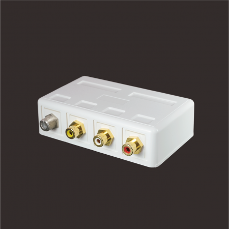 The SMB4 serves as a versatile enclosure for multimedia connectors alongside standard voice and data applications. It supports Quick-Snap bezels preloaded with audio, video, CATV, or BNC adaptors, as well as Quick-Snap bezels fitted with fiber optic SC simplex or LC duplex adaptors. It can also accommodate HDMI 2.0 adaptors for high-quality digital audio/video transmission and USB 2.0 or USB 3.0 adaptors for high-speed data transfer.