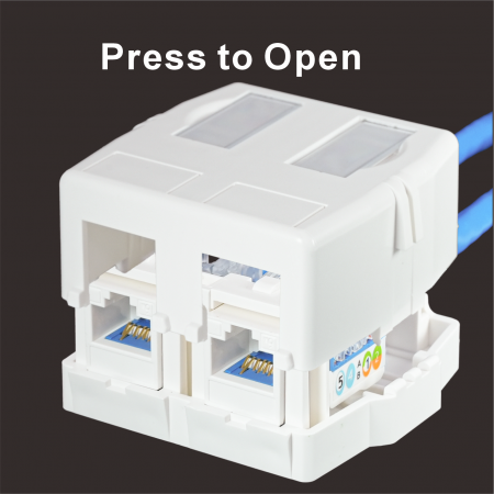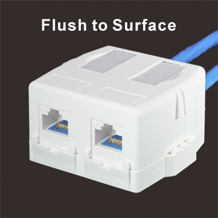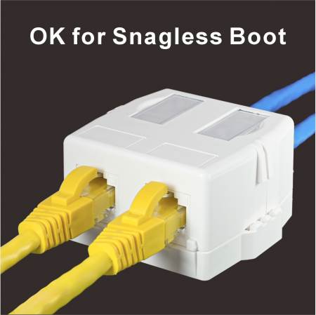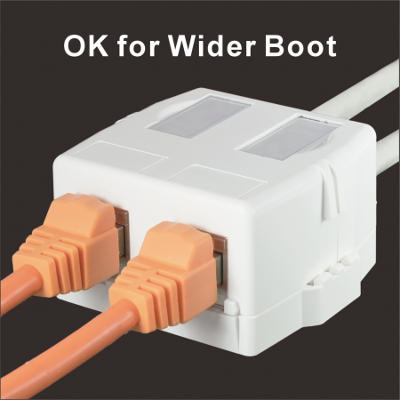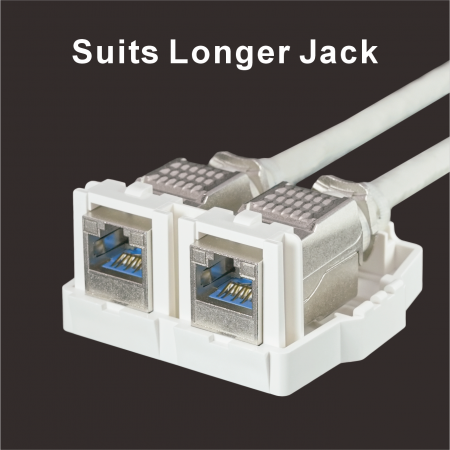 Despite its compact form, the SMBKA02 offers generous internal space for smooth installation of two full-size keystone jacks (each under 20.8mm W × 24.1mm H × 46.5mm L). The jack openings are flush with the front surface, allowing easy access even when using booted patch cords.