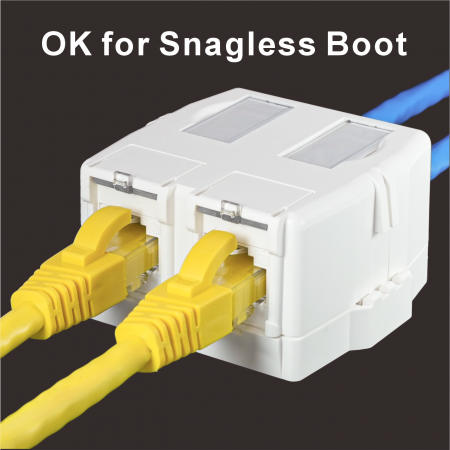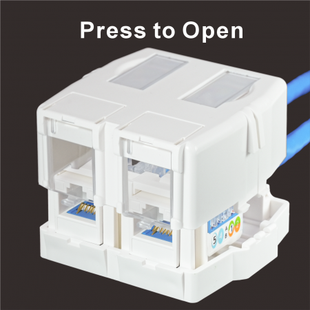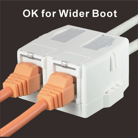 The SMBKA02D includes the patent-pending Garage-Door Lid that prevents booted patch cords from being blocked when plugging into the keystone jacks inside the box. Plus, the lid neatly tucks away, so there’s nothing to get in the way when unplugging the cords.