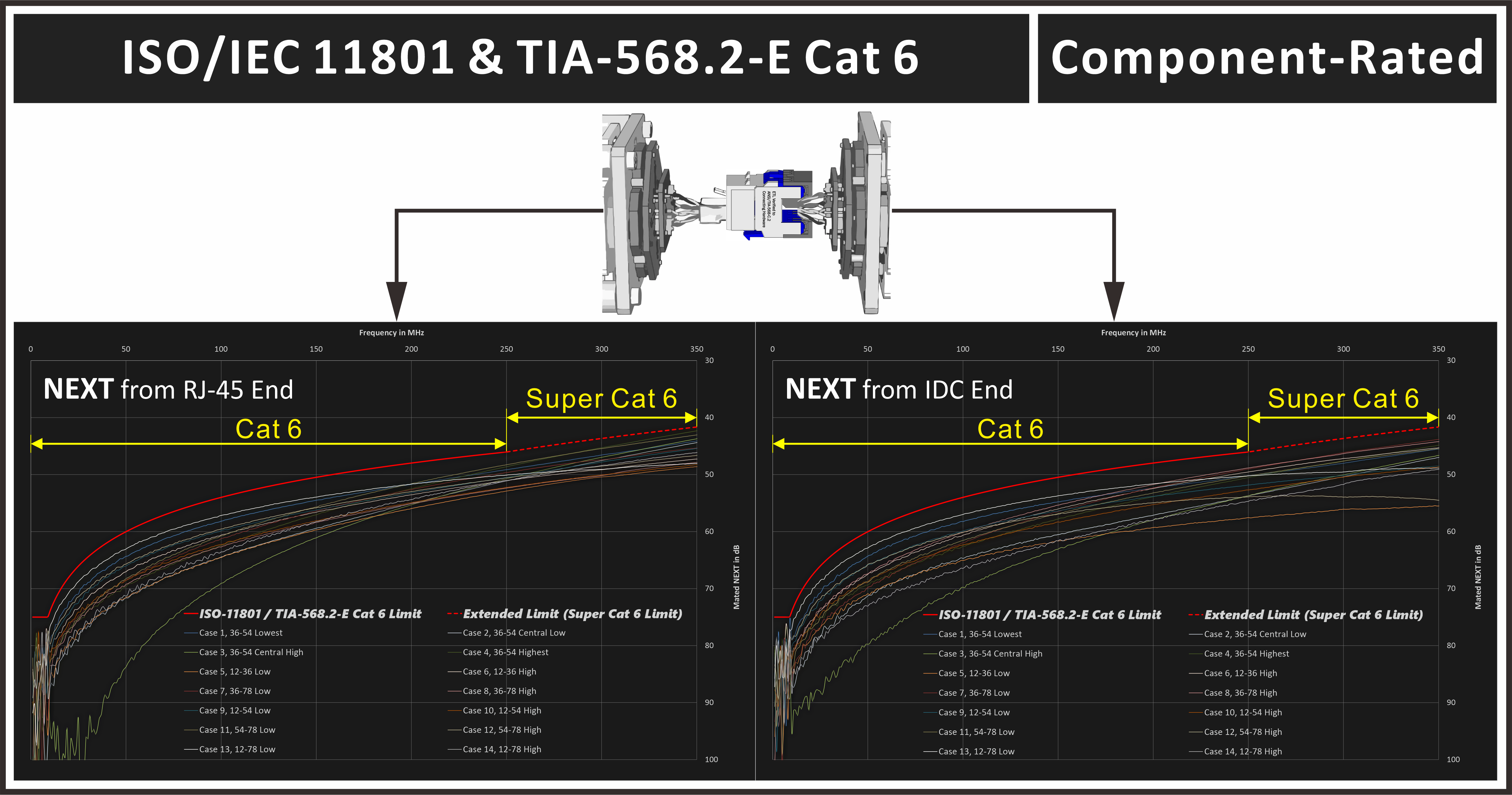 HCI Los conectores con clasificación de componente Super Cat 6 superan el ancho de banda extendido de hasta 350MHz.