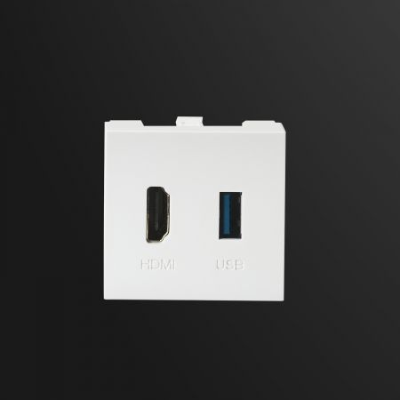 Sub-Inserto 2P, HDMI 2.0 + USB 3.2 de paso angulado, 45x45mm