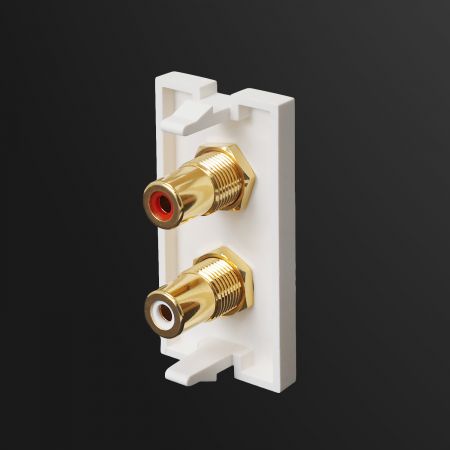 El SIPR2CAG es el Sub-Insert (SIP) precargado con conectores RCA rojos y blancos para audio estéreo. El conector rojo lleva el canal derecho, y el blanco maneja el izquierdo, comúnmente utilizado para transmitir audio analógico entre reproductores de medios, computadoras y amplificadores.