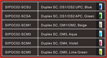 Esta unidad SIP está equipada con un adaptador de fibra óptica Duplex SC, ideal para racks de red de alta densidad y aplicaciones de telecomunicaciones. Soporta fibras monomodo OS1/OS2 y multimodo OM1–OM5, y viene de serie con un adaptador UPC azul para monomodo, además de opciones codificadas por color APC verde y multimodo en beige, aqua, violeta y verde lima.