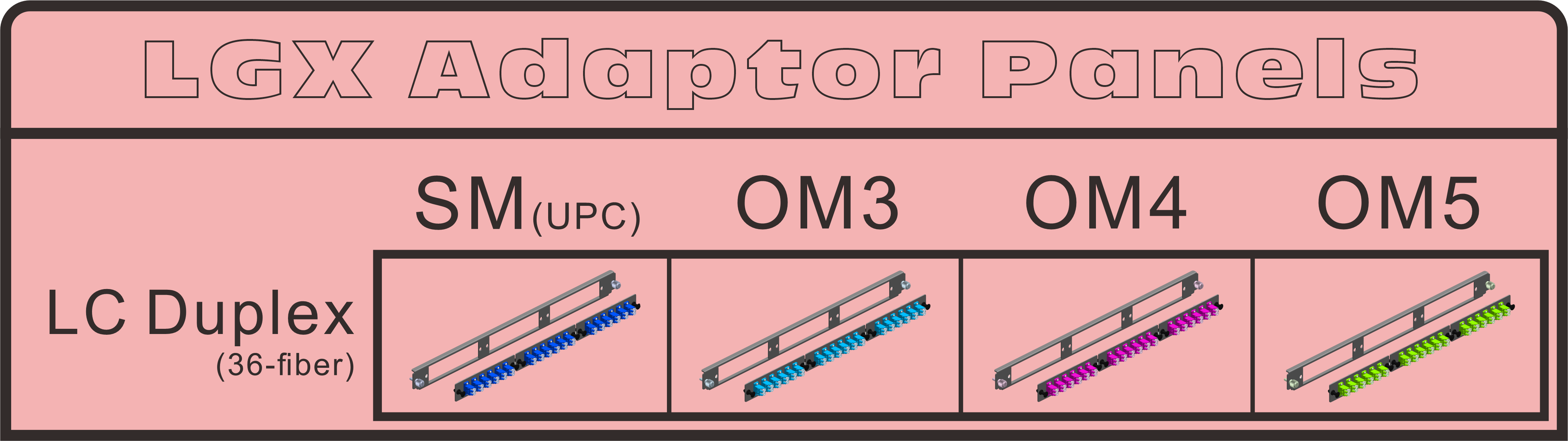 | Panel penyesuai | LC Duplex SM-biru, OM3-aqua, OM4-ungu atau OM5-Hijau Limau |