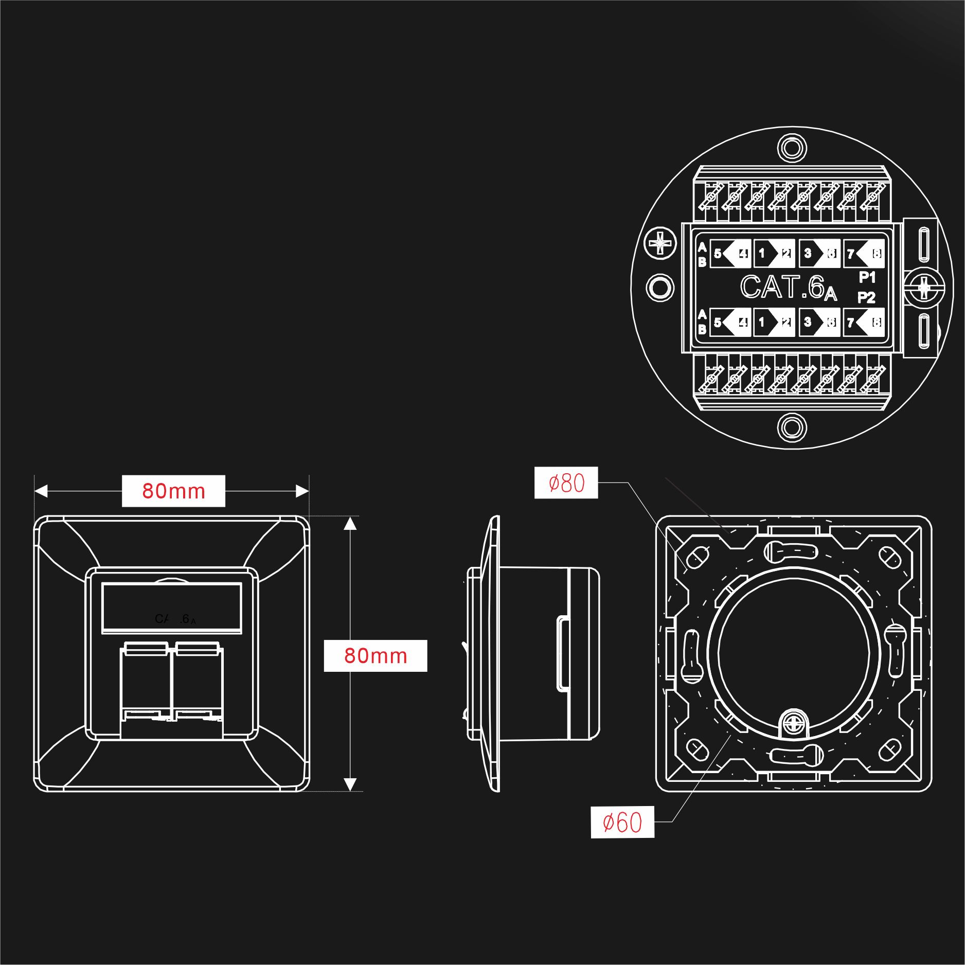 Cat 6A с защитной крышкой, 2 порта с литым кронштейном, 80x80 мм