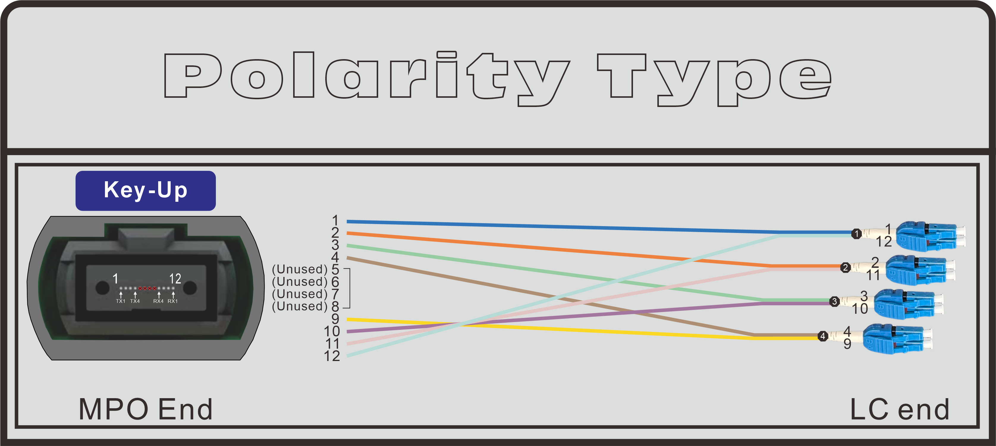 | Полярность | MPO-12(используется 8c) на 4xDuplex LC |