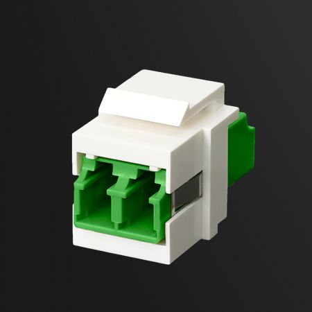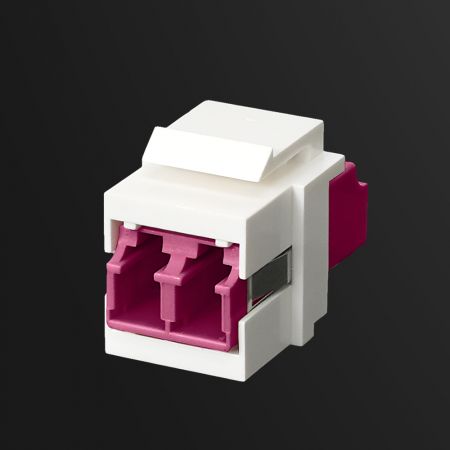 Быстросъемная рамка поставляется с предустановленным адаптером оптоволокна Duplex LC, предназначенным для высокоплотных сетевых сред, таких как центры обработки данных и телекоммуникационные стойки. Его компактные размеры поддерживают два волокна на порт, что помогает поддерживать полярность и удваивать пропускную способность в ограниченных зонах подключения. В стандартной конфигурации используется синий адаптер UPC OS1/OS2, но также доступны варианты APC зеленого цвета для одномодовых соединений и бежевый (OM1/OM2), аквамариновый (OM3), фиолетовый (OM4) или лаймово-зеленый (OM5) для многомодовых установок — все они соответствуют спецификациям волокна с использованием цветовых кодов, принятых в отрасли.
