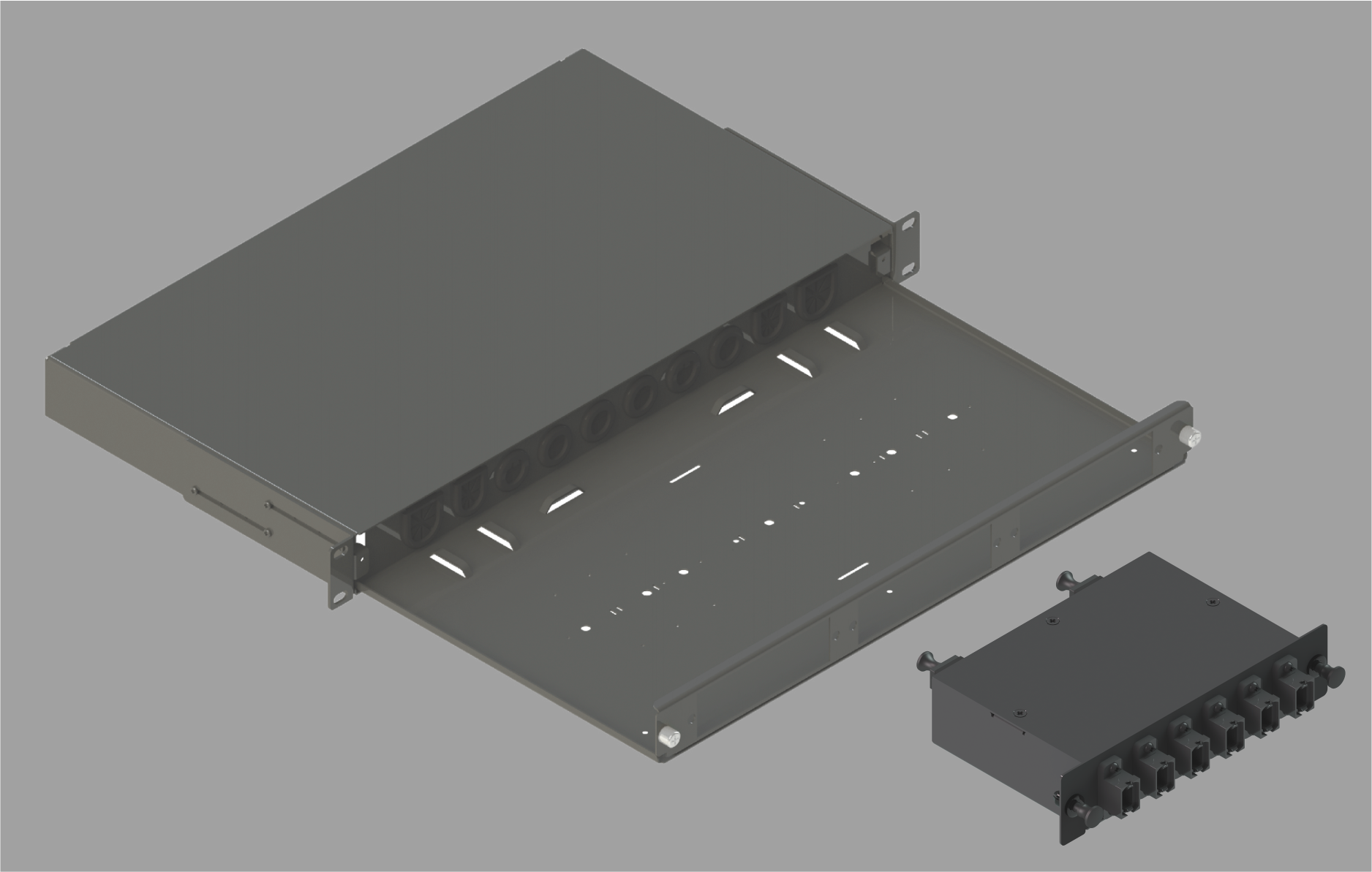 Bảng Kéo 1RU Lắp với MPO-24 x 2 đến MPO-12(8-F) x 6 Bảng Chuyển Đổi Di Chuyển