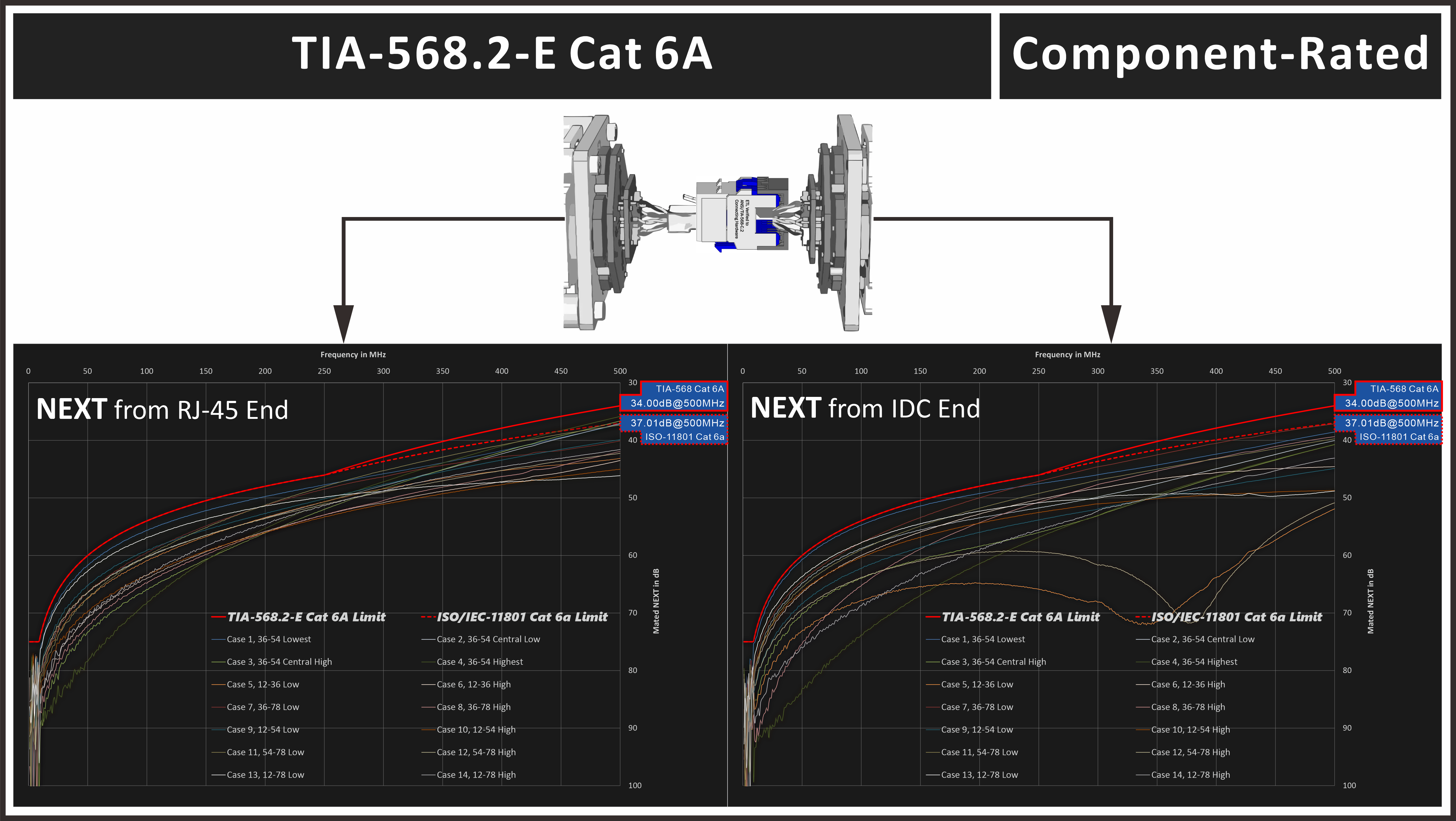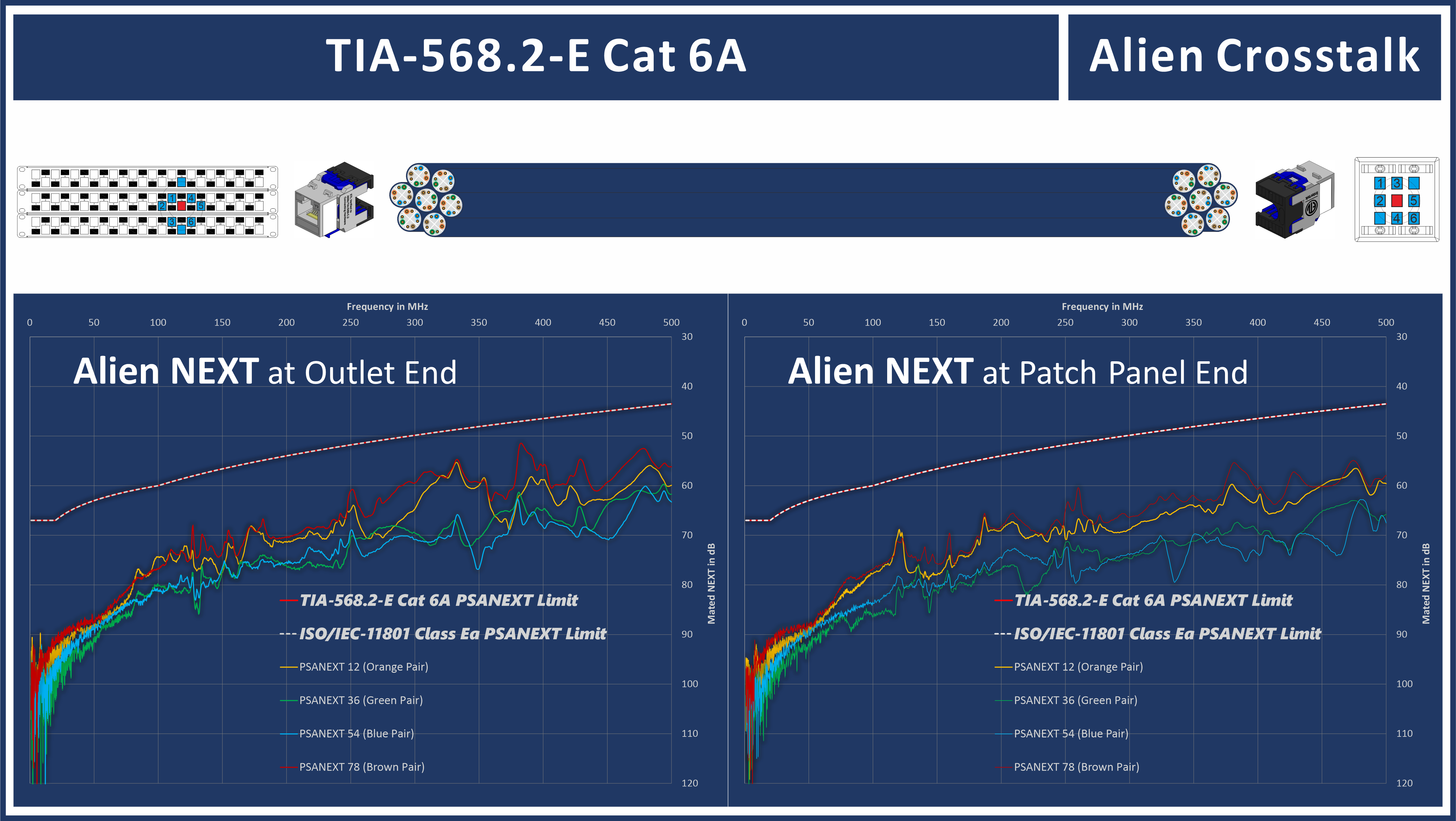 Tiêu chuẩn ANSI/TIA-568.2-D rõ ràng quy định rằng một jack phải đáp ứng không chỉ các giới hạn NHIỄU NỘI BỘ mà còn cả yêu cầu NHIỄU NGOÀI để đáp ứng tiêu chuẩn phần cứng kết nối Cat 6A.
