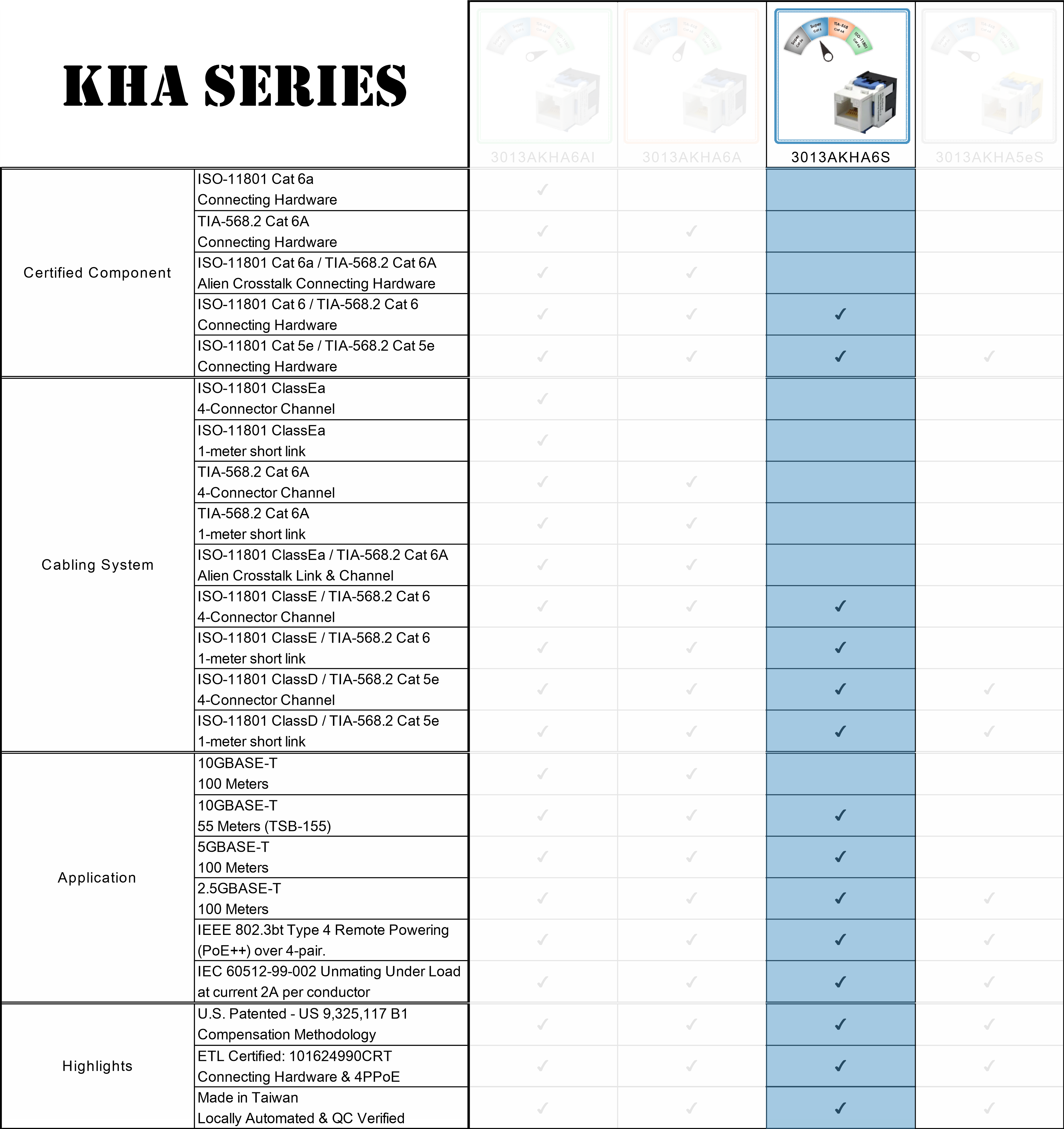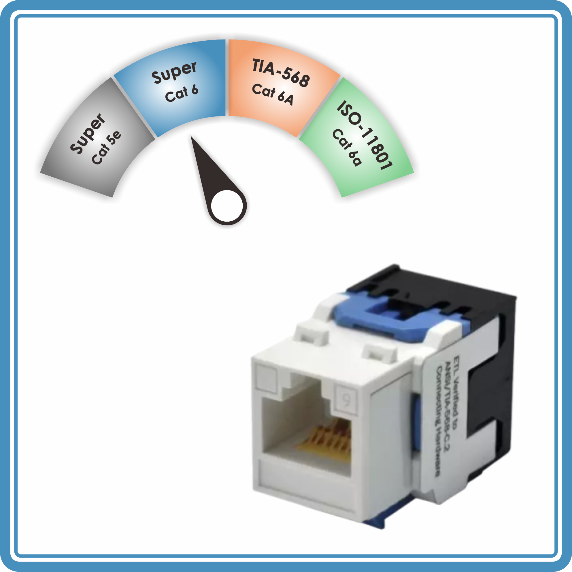 Khi bạn chọn 3013AKHA6S, bạn đang nhận được các jack Super Cat 6 Được xếp hạng thành phần vượt quá tiêu chuẩn, hỗ trợ băng thông mở rộng lên đến 350MHz mà các jack 250MHz tiêu chuẩn không thể so sánh.