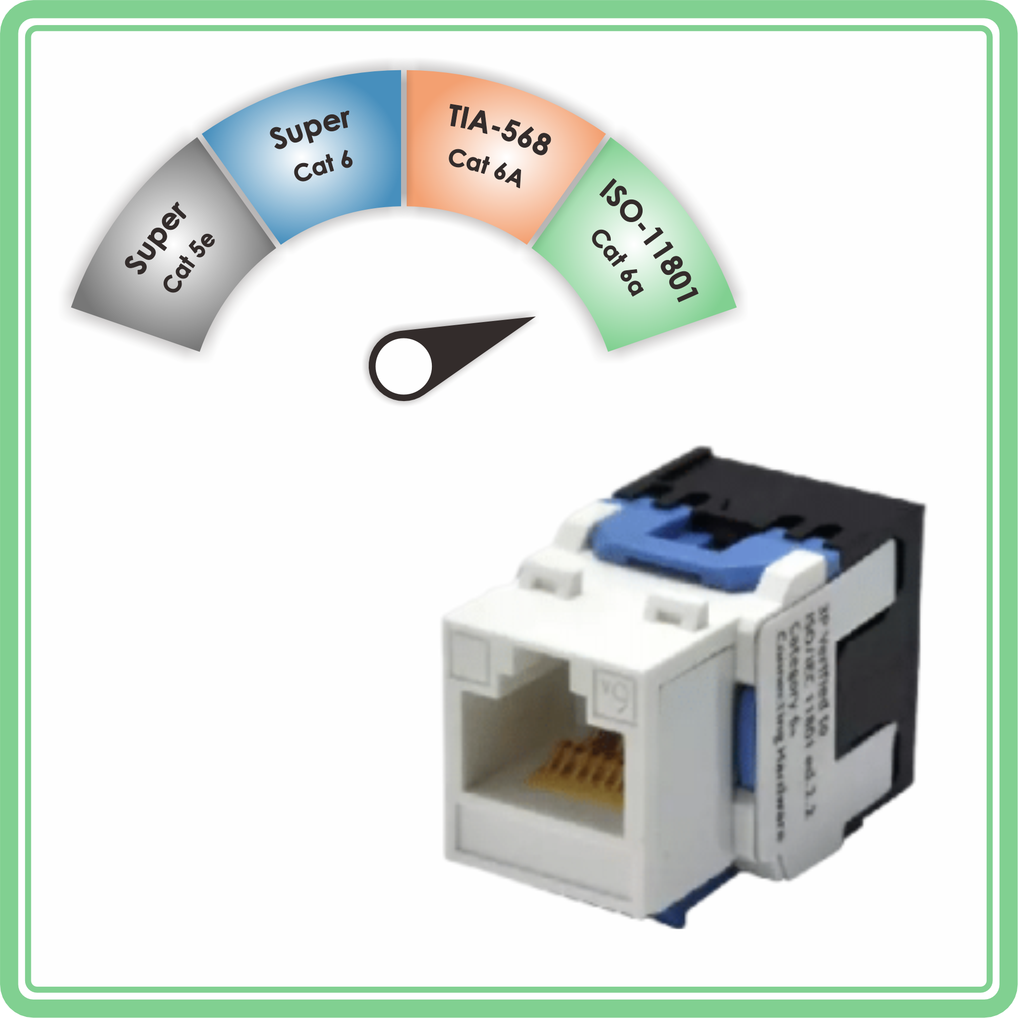 Jack Keystone 180˚ được xếp hạng thành phần ISO Cat 6a / TIA Cat 6A không chắn