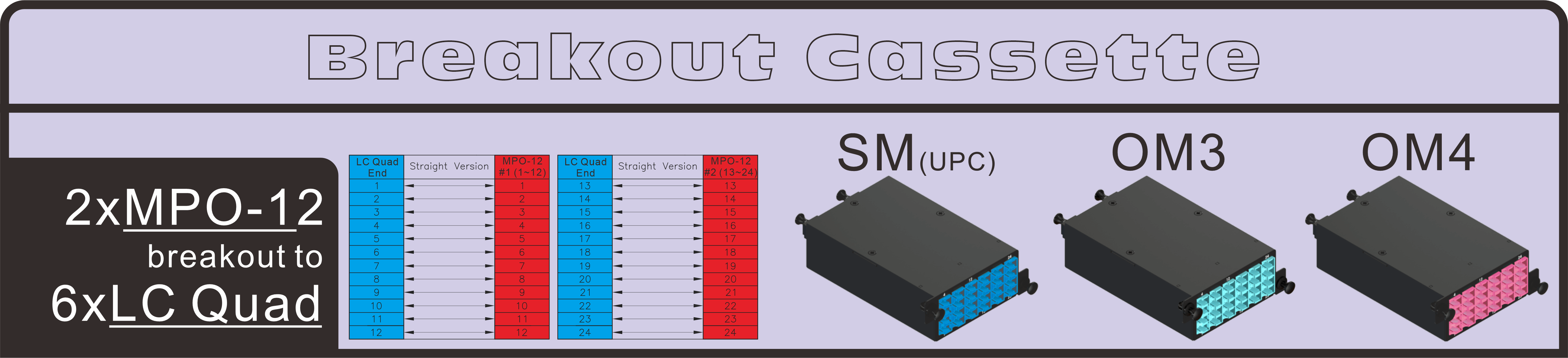 Mô-đun 2xMPO-12 đến 6xLC Quad Cassette (24x12-Mô-đun=288-Sợi)