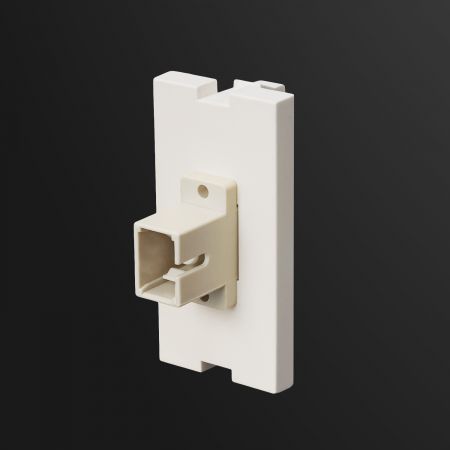 Kích thước 50 x 25 mm và được làm từ nhựa ABS chống cháy đạt tiêu chuẩn UL94V-0, màu sắc mặc định là trắng văn phòng (gần với RAL 9016), với màu sắc tùy chỉnh có sẵn cho đơn hàng từ 5.000 đơn vị trở lên.